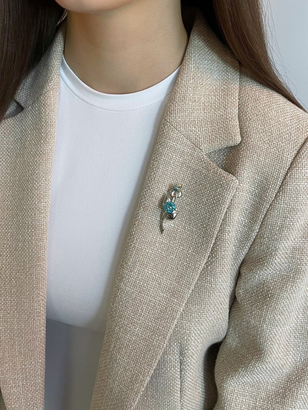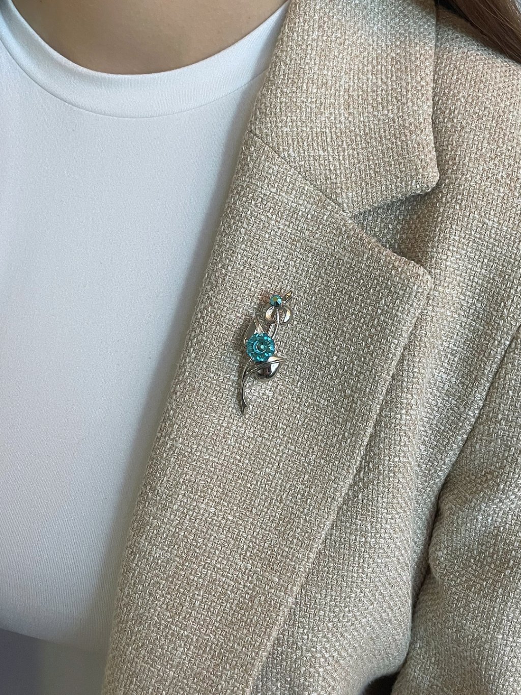 Brož ve tvaru drobné kytičky nese na svých okvětních lístcích svit českého křišťálu Preciosa. Brož, která se připíná jako špendlík, je jemná a přesto výrazná. Hodí se na saka, šály nebo kabáty. Doporučujeme ji připínat na tužší látku.