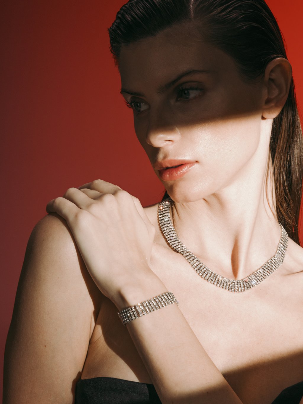 Třpytivý náhrdelník z českého křišťálu Preciosa s názvem Serenis je stvořen pro okamžiky, kdy chcete zazářit. Elegantní šperk ze zušlechtěného bižuterního kovu je široký 13 mm a jeho povrch zdobí nekonečná řada broušených kamenů českého křišťálu Preciosa. Díky délce 38 cm a 7cm adjustě jej snadno přizpůsobíte svému dekoltu a vytvoříte dokonalý akcent pro večerní šaty i slavnostní příležitosti.