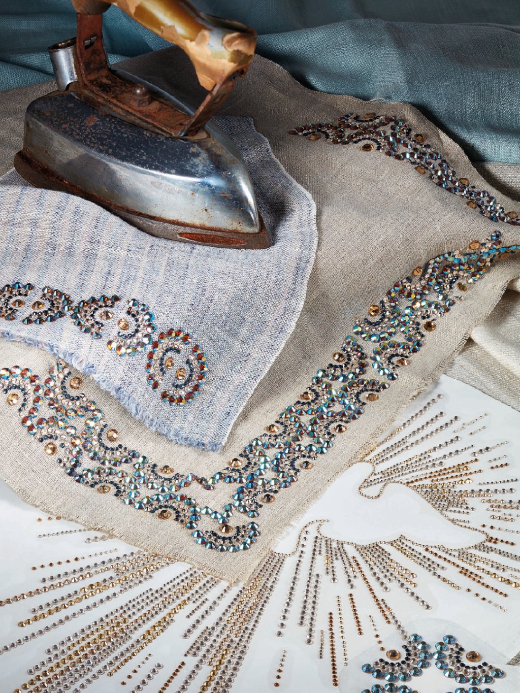 Samotná aplikace je velmi snadná – využít můžete běžnou žehličku s pečicím papírem nebo doporučujeme speciální hotfix aplikátor, který usnadní přesné umístění jednotlivých kamenů.