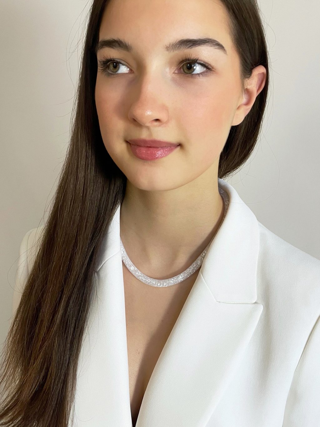 Náhrdelník z chirurgické oceli Scarlette s českým křišťálem Preciosa, bílý