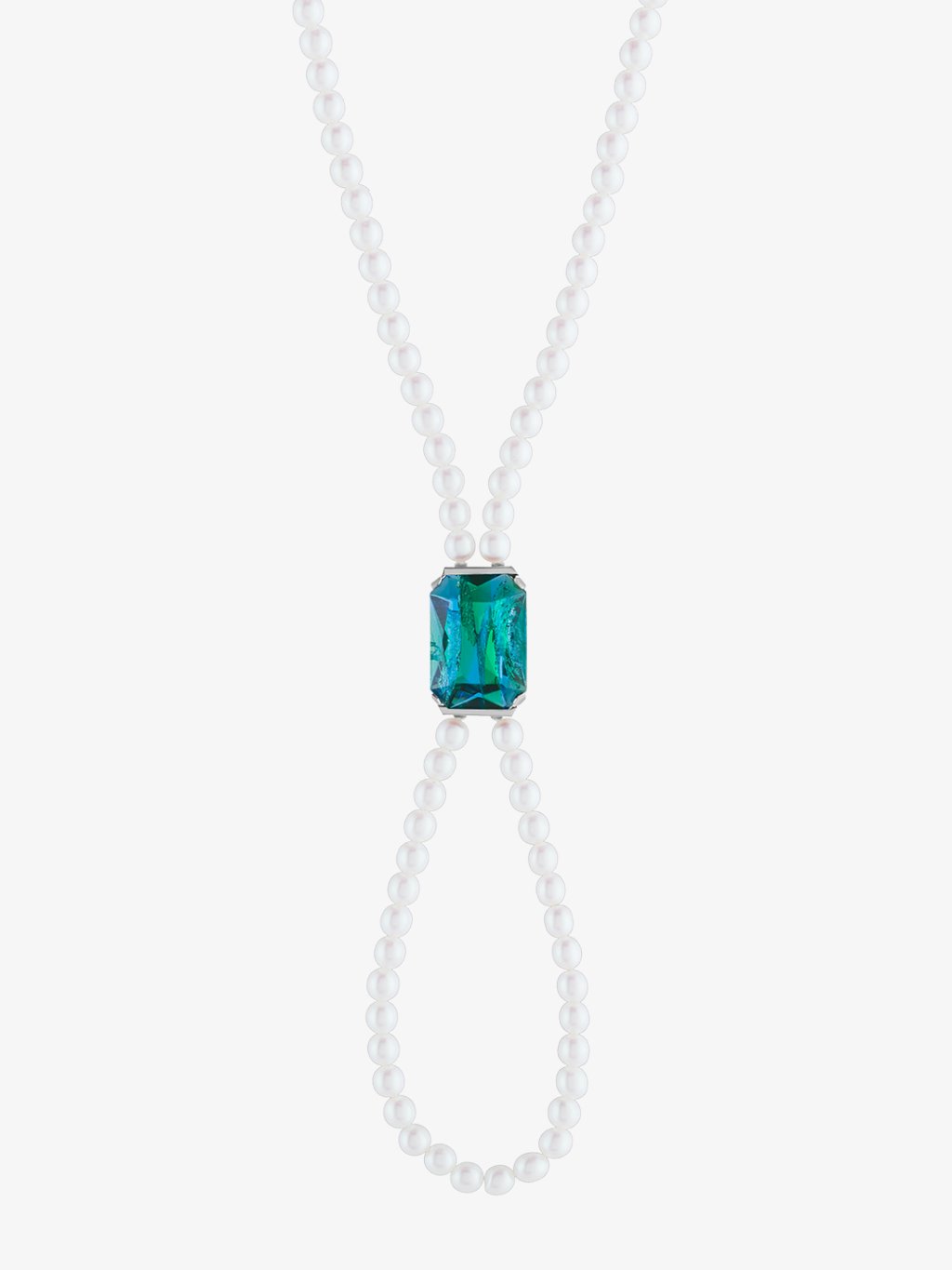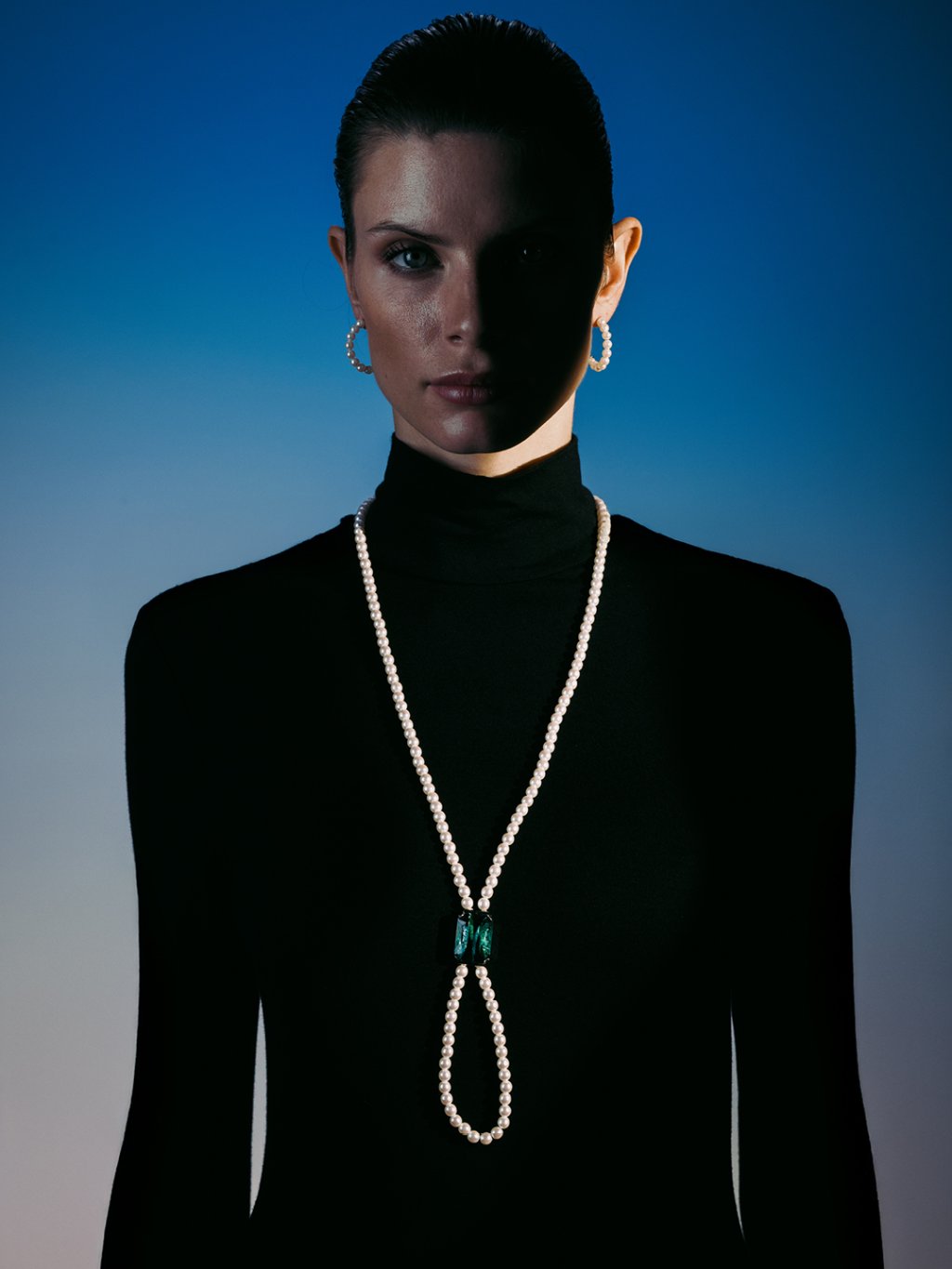 Jméno Phoebe v řecké mytologii znamená „zářící“ či „čistá“ a bylo spojováno s bohyní měsíce. Stejný nádech jemného kouzla a elegance nese i tento perlový náhrdelník. Dlouhá řada voskových perel splétá příběh sofistikované krásy, zatímco uprostřed se vyjímá ručně mačkaný křišťálový kámen Preciosa v emeraldové barvě. Ten vzniká nad plamenem kahanu, a je navíc obohacen o plátek stříbra – proto je každý kámen vždy originál.
