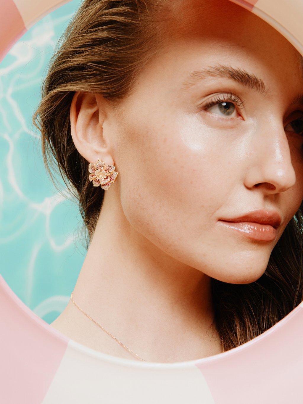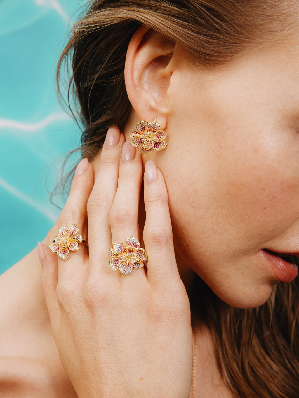 Design Mirage působí jako z pohádky – září, třpytí se a nikdy neuvadne. Pozlacený šperk ve tvaru rozkvetlého květu je posetý záplavou kamenů kubické zirkonie, které se vyjímají na okvětních lístcích. Je něžný, ale zároveň nepřehlédnutelný. Tato květinová kolekce vnese do Vašeho dne špetku kouzla a nadmíru luxusu.