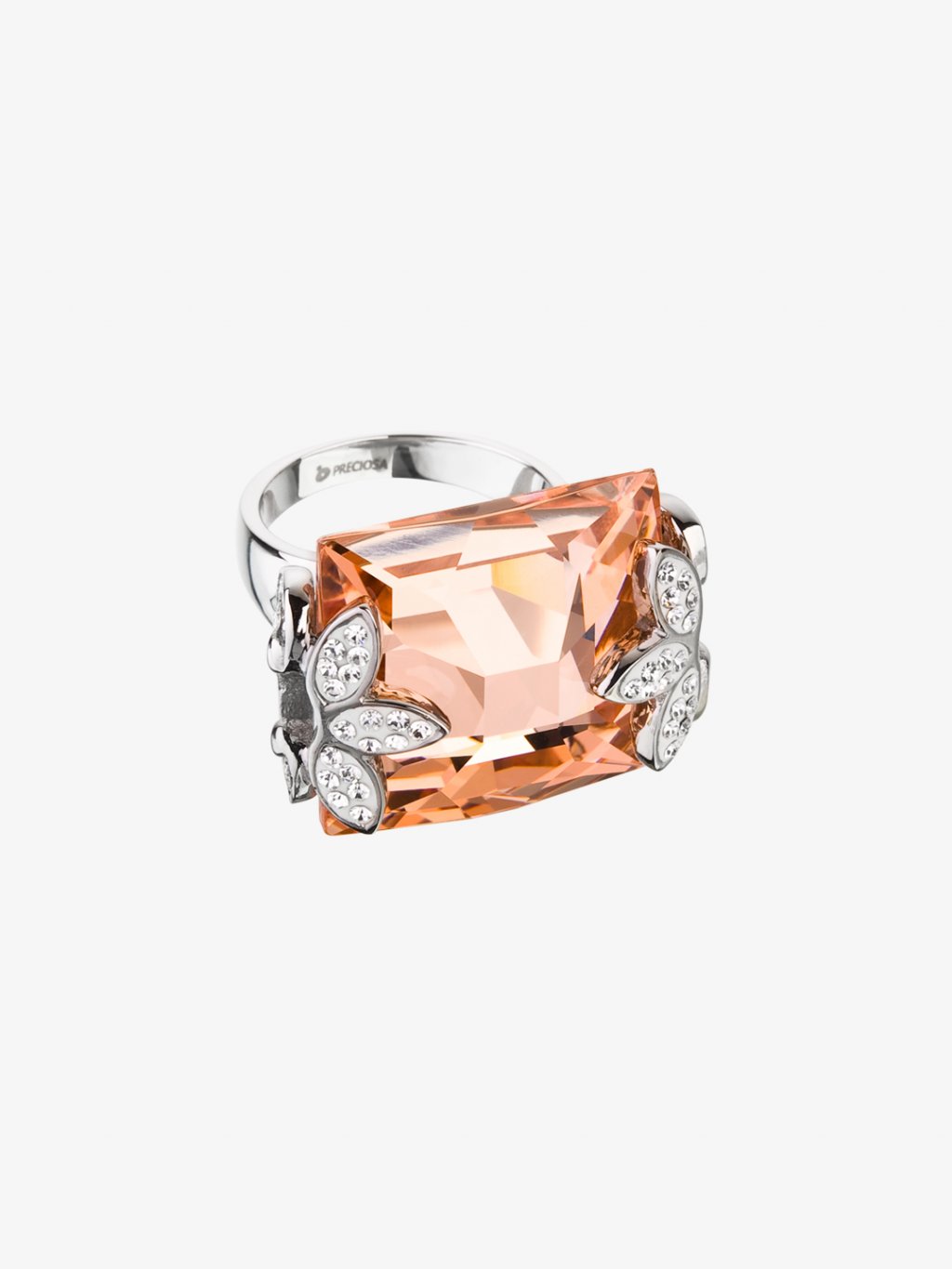 Velký květinový prsten Floraison z chirurgické oceli s českým křišťálem Preciosa, barva apricot.