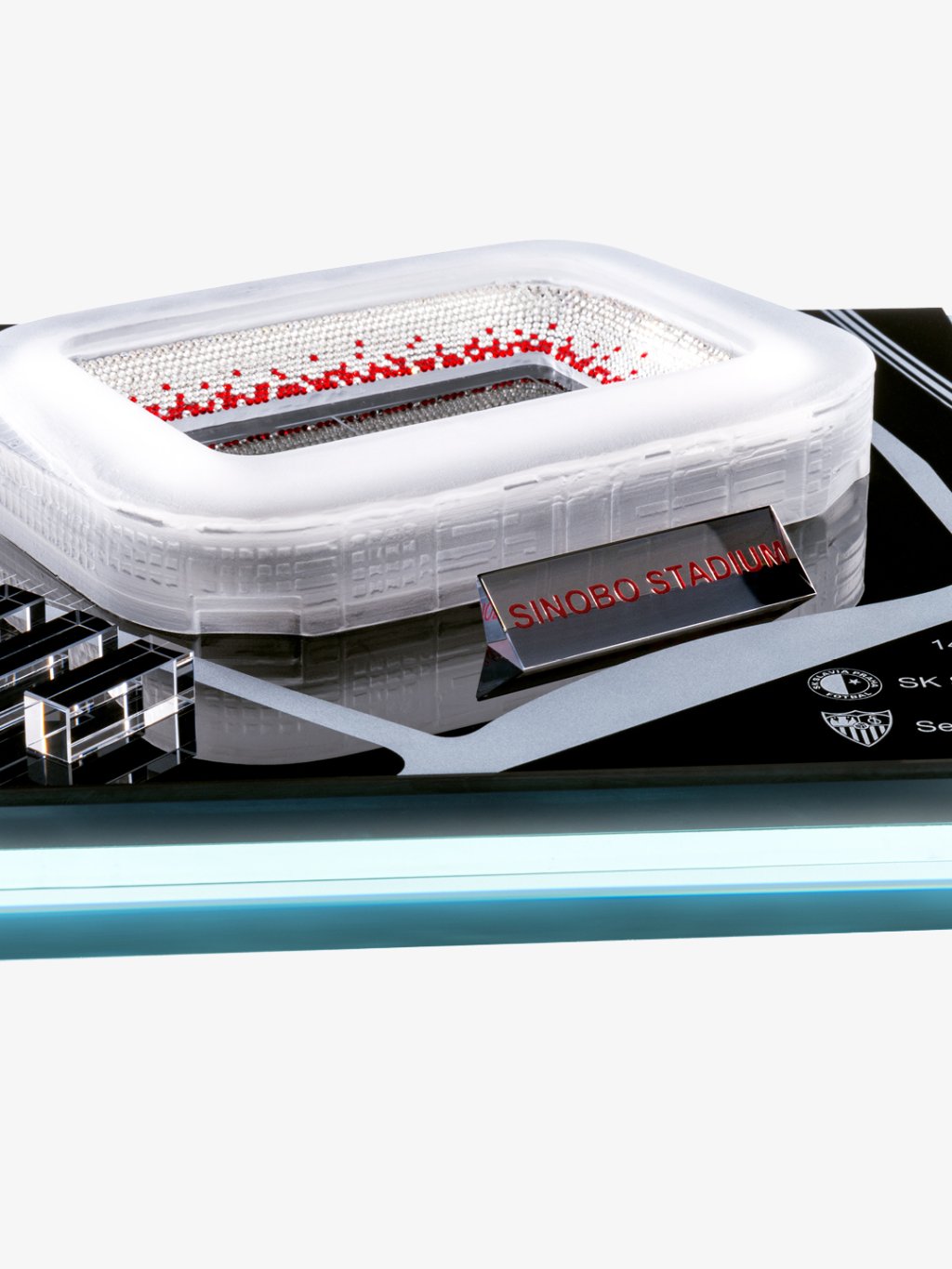 Křišťálová dokonalost sama je skleněný stadion Slavia, vyrobený na míru pro SK Slavia Praha. Slouží pro inspiraci, je vyroben na zakázku a není prodejný. Nechte se inspirovat skleněnými unikáty, které jsme vytvořili. I pro Vás připravíme nabídku na míru a k dokonalosti vybrousíme Vaši vysněnou trofej nebo jedinečný dárek.