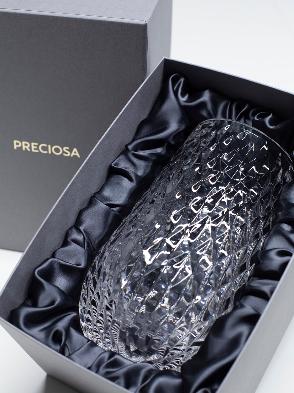 Dekorativní a praktická křišťálová váza s broušeným leštěným vzorem Spitstein je unikátem z dílny Preciosa. Váza měří přes 20 cm a dokonale ozdobí jak moderní, tak klasické interiéry.