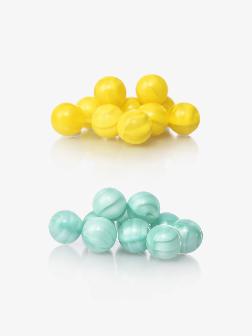 Skleněné cvrnkací kuličky Preciosa, sada 2× 10 ks, žluto-mentolové