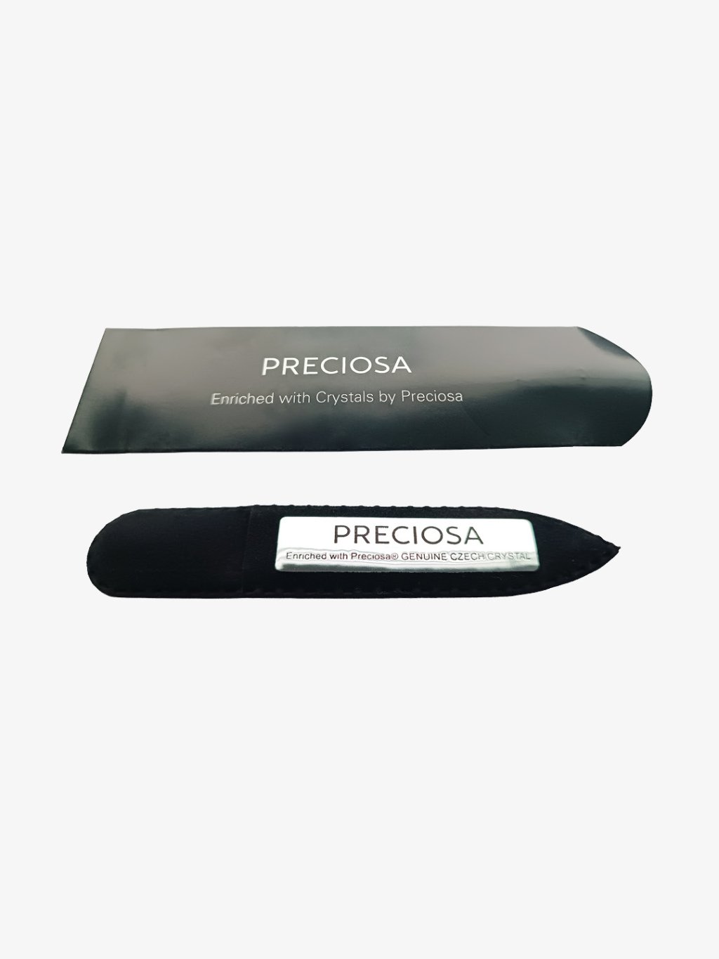 Pilník měří 14 cm je zabalen do elegantního sametové pouzdra, které je vložené do papírového obalu s logem Preciosa.