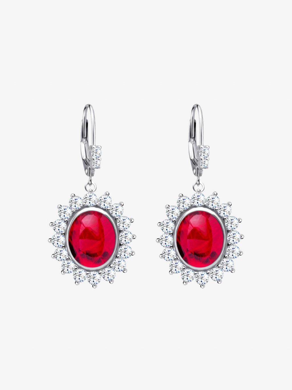 Stříbrné náušnice Camellia s českým křišťálem a kubickou zirkonií Preciosa, červené
