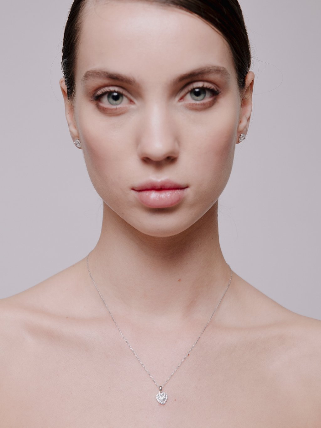 Náušnicím dominuje centrální vybroušený kámen ve tvaru srdíčka, který je lemován drobnějšími krystaly kubické zirkonie, ty dodávají šperku jemnost a něžnost. Ozdobte se tímto stříbrným šperkem i vy, dovolte třpytivým zirkonům rozzářit váš look.