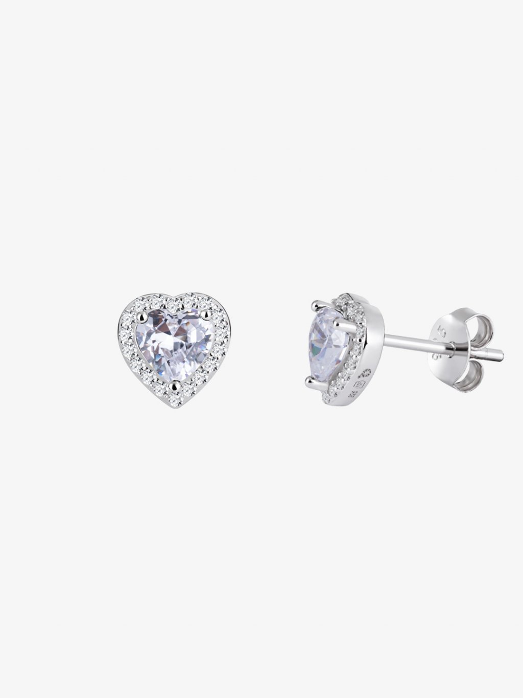 Stříbrné náušnice Velvet Heart, srdce s kubickou zirkonií Preciosa, bílé