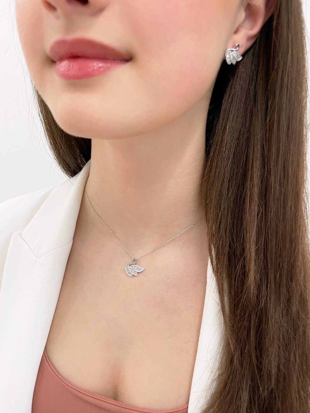 Jemný náhrdelník v podobě stříbrné labutě zdobené broušenými kameny kubické zirkonie je dokonalým spojením elegance a nadčasového designu. Labuť, známá svou krásou a ladností, symbolizuje čistotu, lásku a věrnost, což dodává šperku hluboký význam.