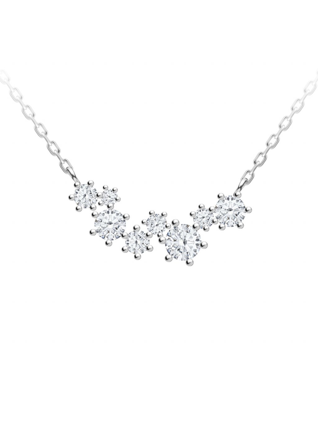 Stříbrný náhrdelník Vela tvoří 8 zářících kamenů kubické zirkonie různé velikosti. Jemný design šperku ocení ženy milující jemnou eleganci.