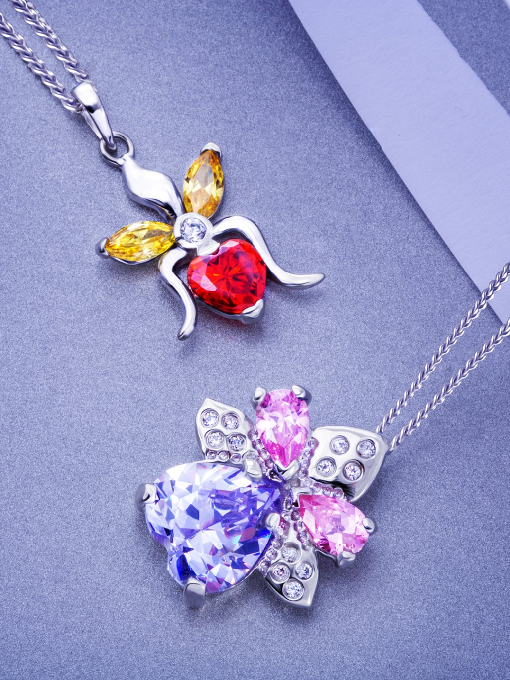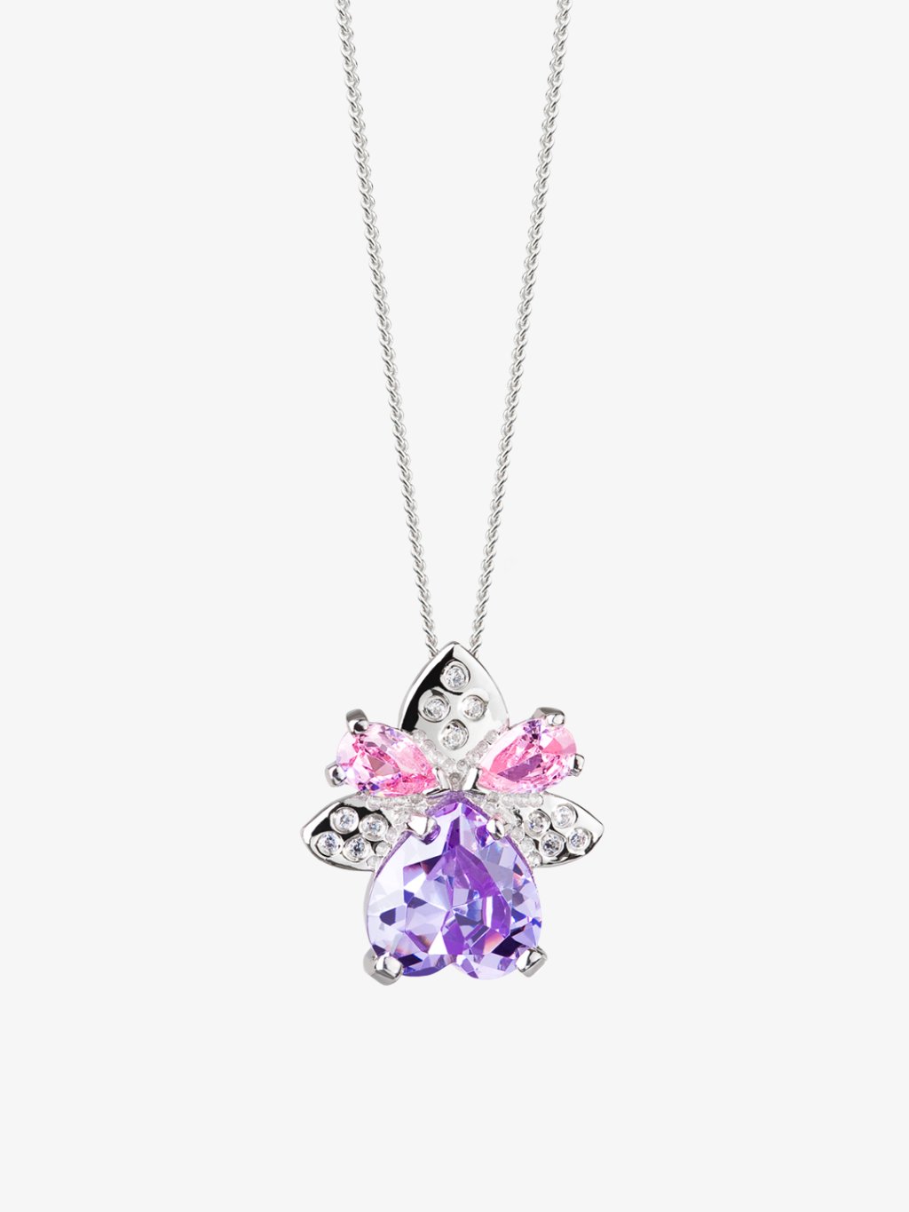 Jemný šperk Gentle ve tvaru stylizované orchideje je dokonalý dárek pro ženu, která miluje pastelovou růžovou nebo fialovou barvu. Tento stříbrný přívěsek na jemném řetízku skvěle kombinuje unikátní broušené kameny kubické zirkonie Preciosa s rhodiovaným stříbrem. Šperk Gentle je vhodný na denní nošení i do společnosti.
