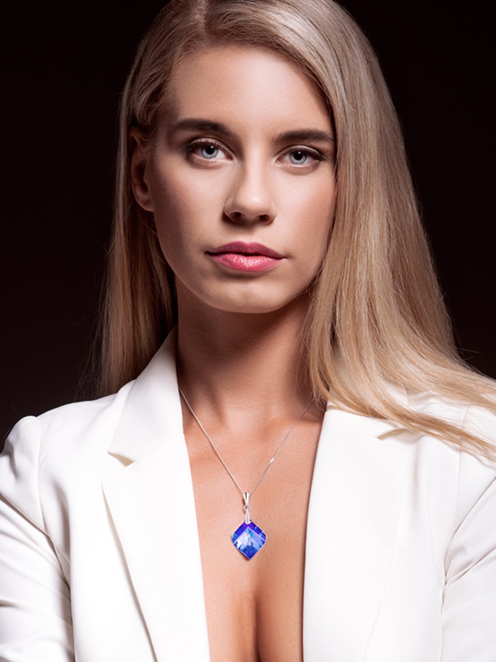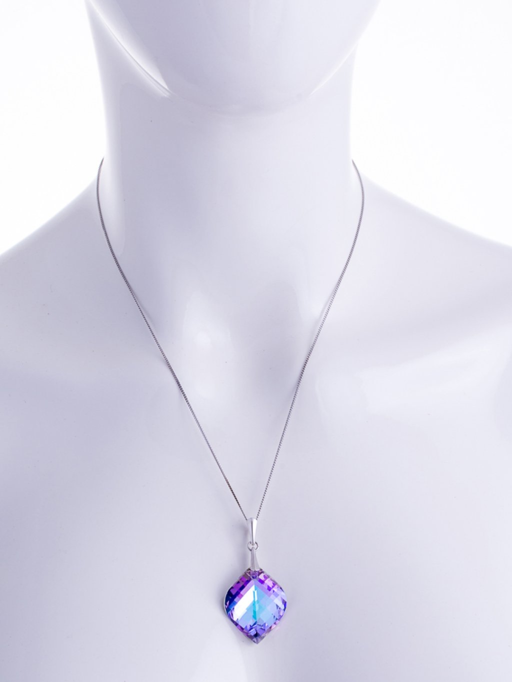 Stříbrný přívěsek s rhodiem upoutá Vaši pozornost svým broušeným kamenem z českého křišťálu, který je pověšen na jemném řetízku. Šperk má oblíbenou fialkovou barvu křišťálu z Preciosy.