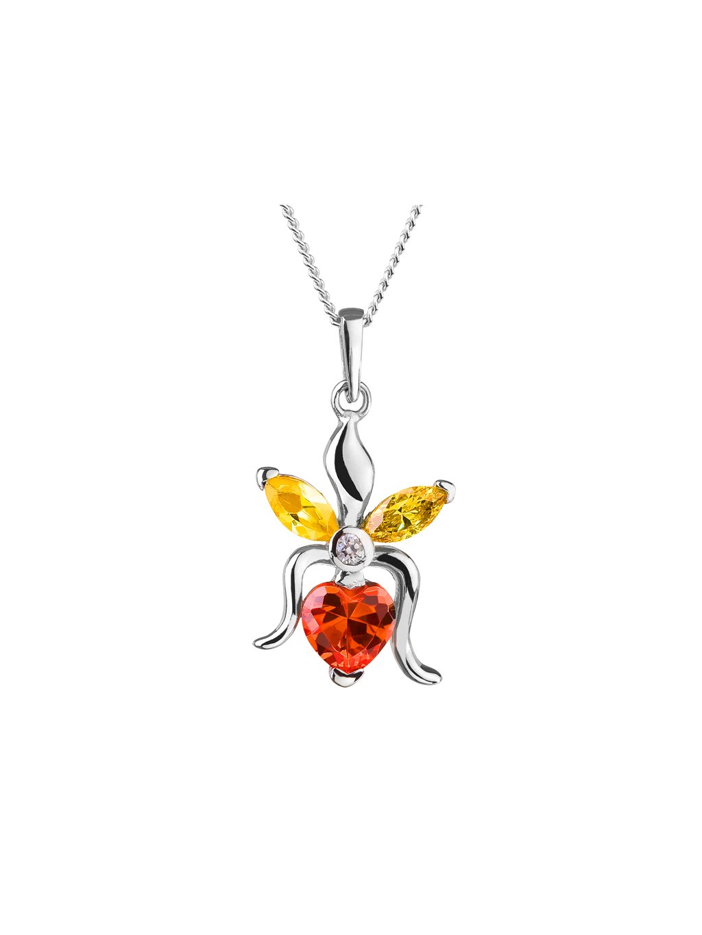 Stříbrný přívěsek s řetízkem Silken s kubickou zirkonií Preciosa, oranžový