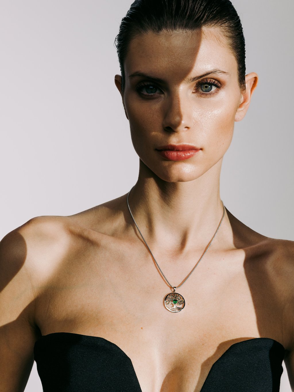 Stříbrný přívěsek s řetízkem Sparkling Tree of Life, strom života s kubickou zirkonií Preciosa, emerald