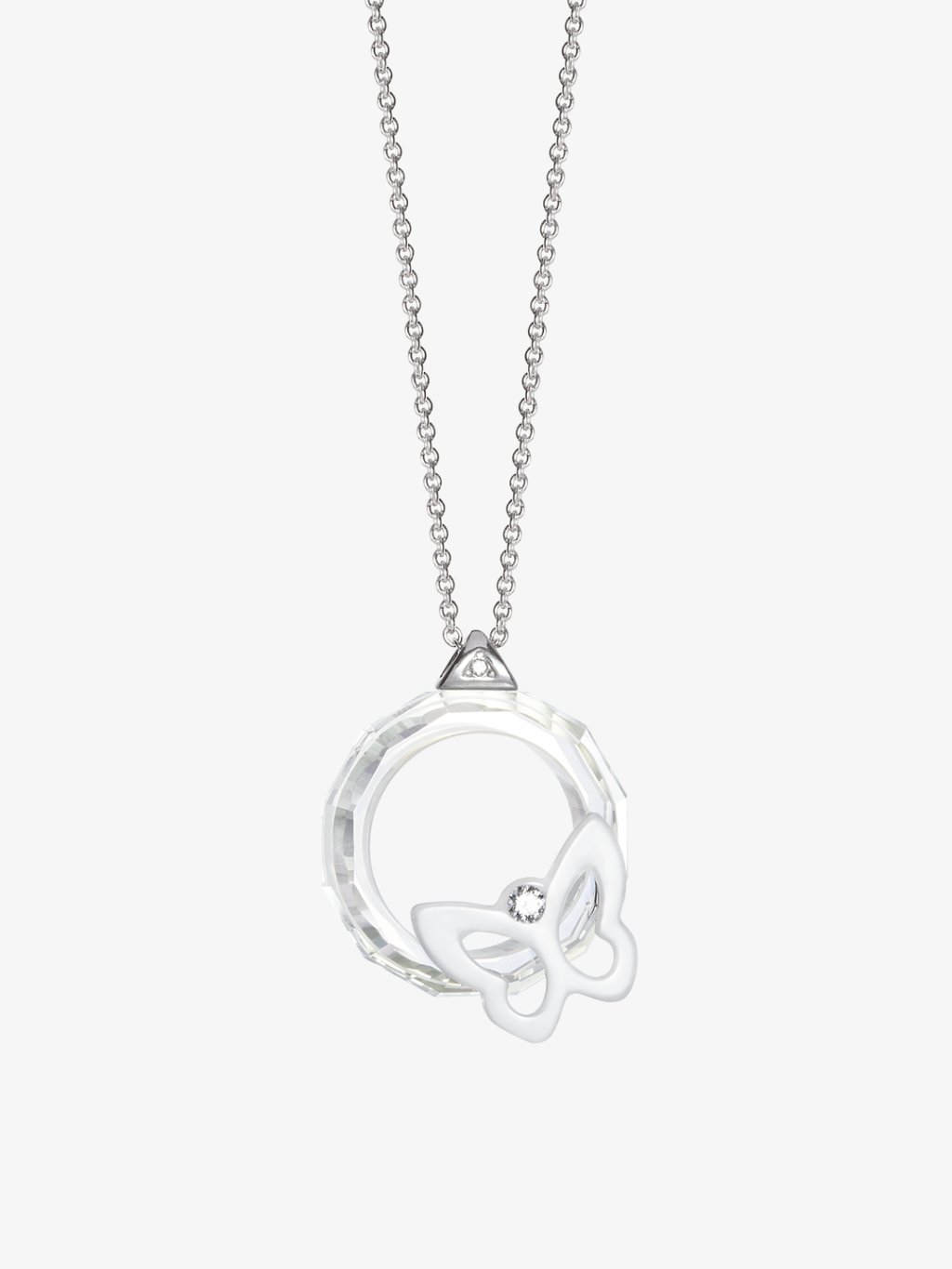 Stříbrný přívěsek Subtle Beauty s bílým keramickým motýlkem rozzáří Váš outfit, podtrhne Váš osobitý styl a upoutá Vaše okolí svou brilancí a třpytem broušeného křišťálového kamene Preciosa a drobných kamenů kubické zirkonie. Letící motýlek symbolizuje volnost, křehkost.