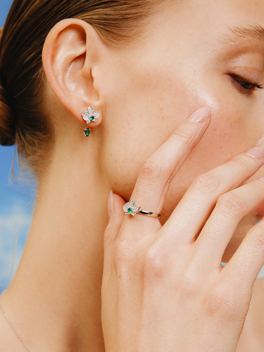 Když se elegance potká s trochou hravosti, vznikne šperk jako vystřižený z pohádky – přesně jako design Evergreen. Stříbrný prsten se třpytí díky celé řadě broušených kamenů kubické zirkonie. A aby toho nebylo málo, uprostřed září emeraldový kámen kubické zirkonie, který připomíná srdce rozkvetlého květu.
